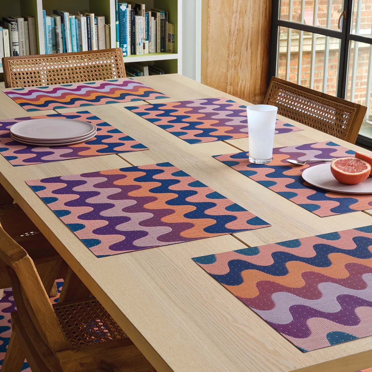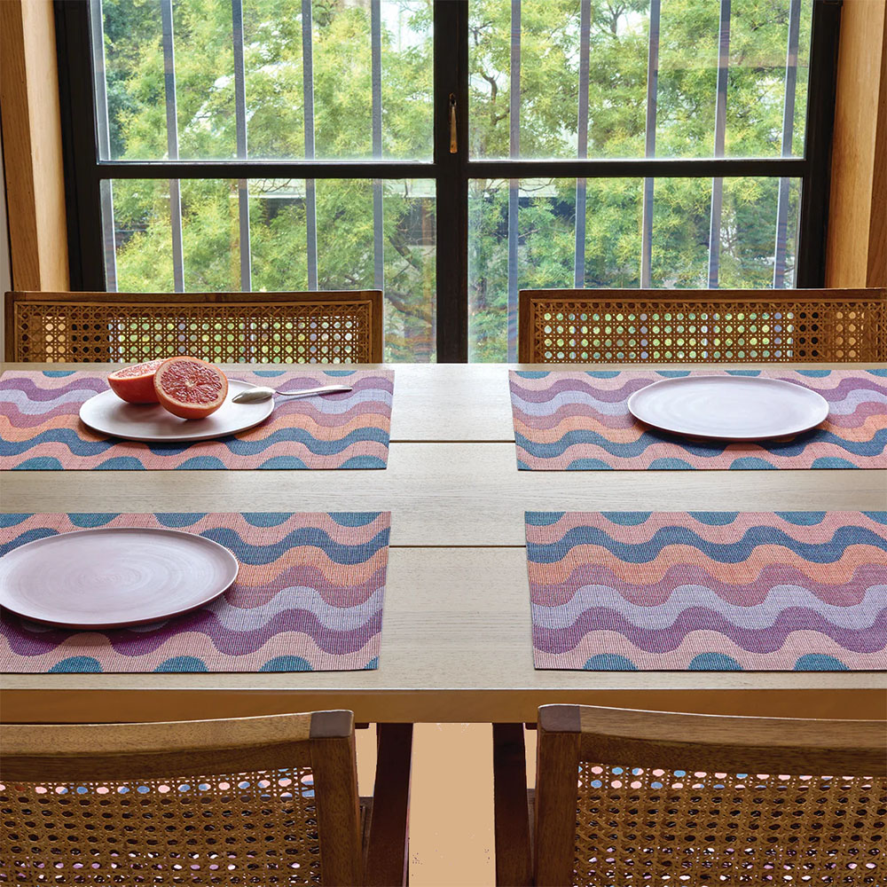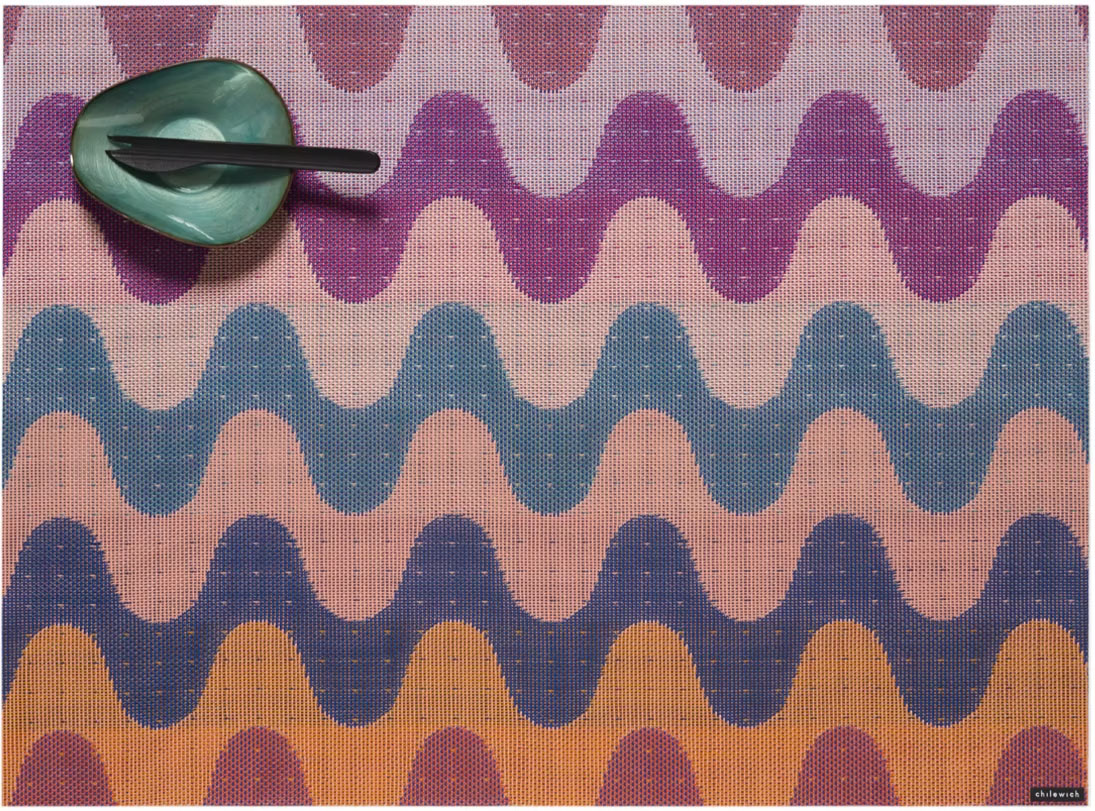 Een zachte en rijk gestructureerde variant op klassieke zigzagpatronen, met gedurfde rondingen en vrolijke kleuren. Als je goed kijkt, zie je de complexiteit van de geweven structuur, waarin zorgvuldig op elkaar afgestemde tinten de golvende lijnen omlijsten en vormen. Ook verkrijgbaar als tafellopers en vloerkleden.
