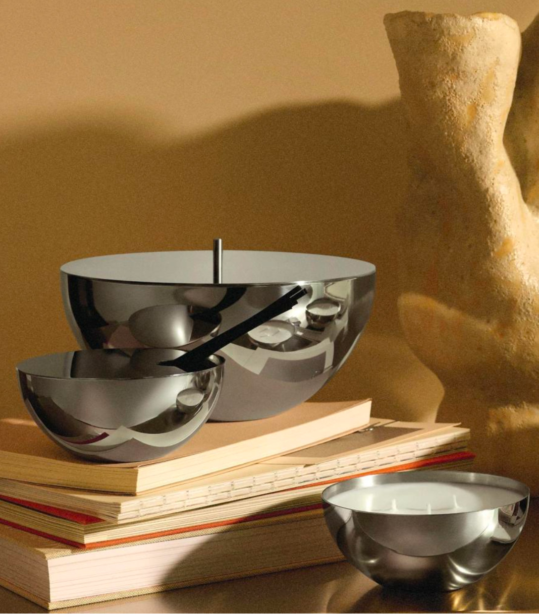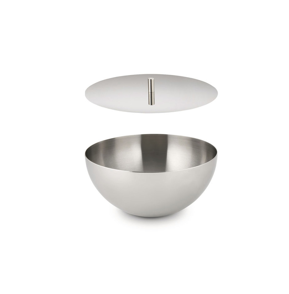Gepolijste 18/10 roestvrijstalen container met deksel, komvormig. Onderdeel van de Rocc Fragrance lijn, uitgebracht in 2025 .Bestaat in 3 formaten.