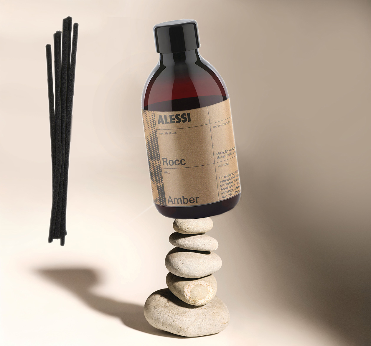 Amber straalt omhullende warmte en regeneratie uit. Honing, warme specerijen en de balsamische rondheid van tonkaboon geven een gevoel van intimiteit en vitaliteit — hetzelfde rijke karakter als de kaarsversie, nu continu verspreid via stokjes.