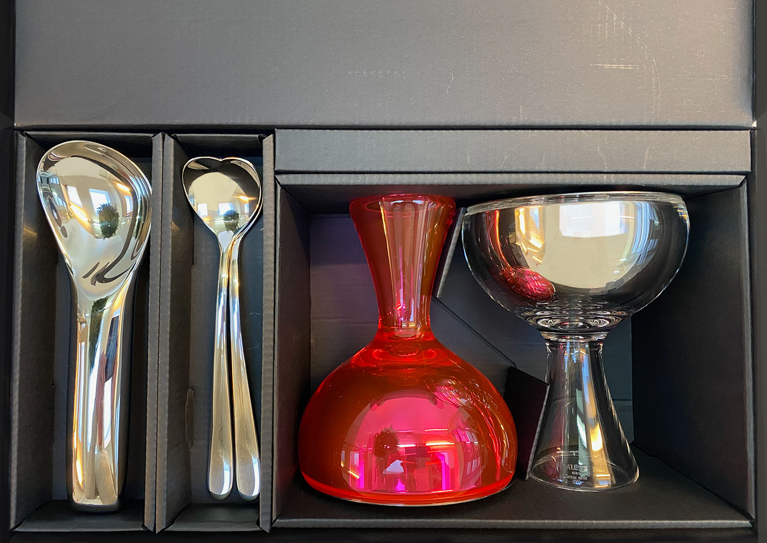 Feestelijke nieuwe set met twee Alessi Big Love ijscoupes met uitneembaar rvs kommetje inclusief de bijzondere hartvormige ijslepels en de vaatwasbestendige fraaie IJsschep Koki. Hier met 1 x Fuchsia en 1 x Helder. Bij ons ook andere combi's mogelijk.