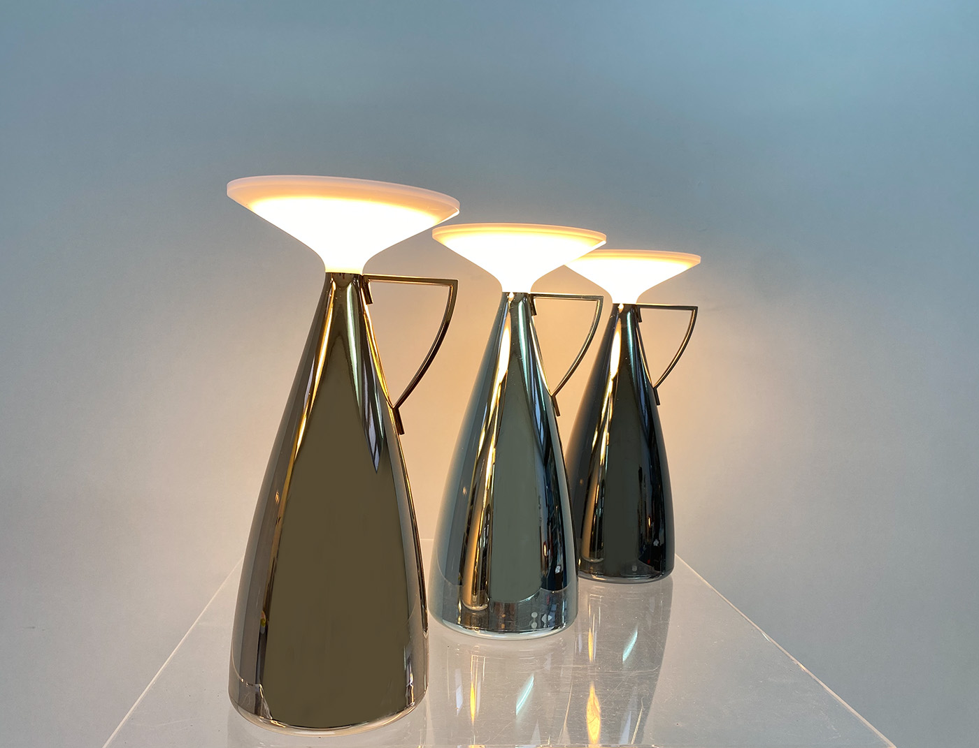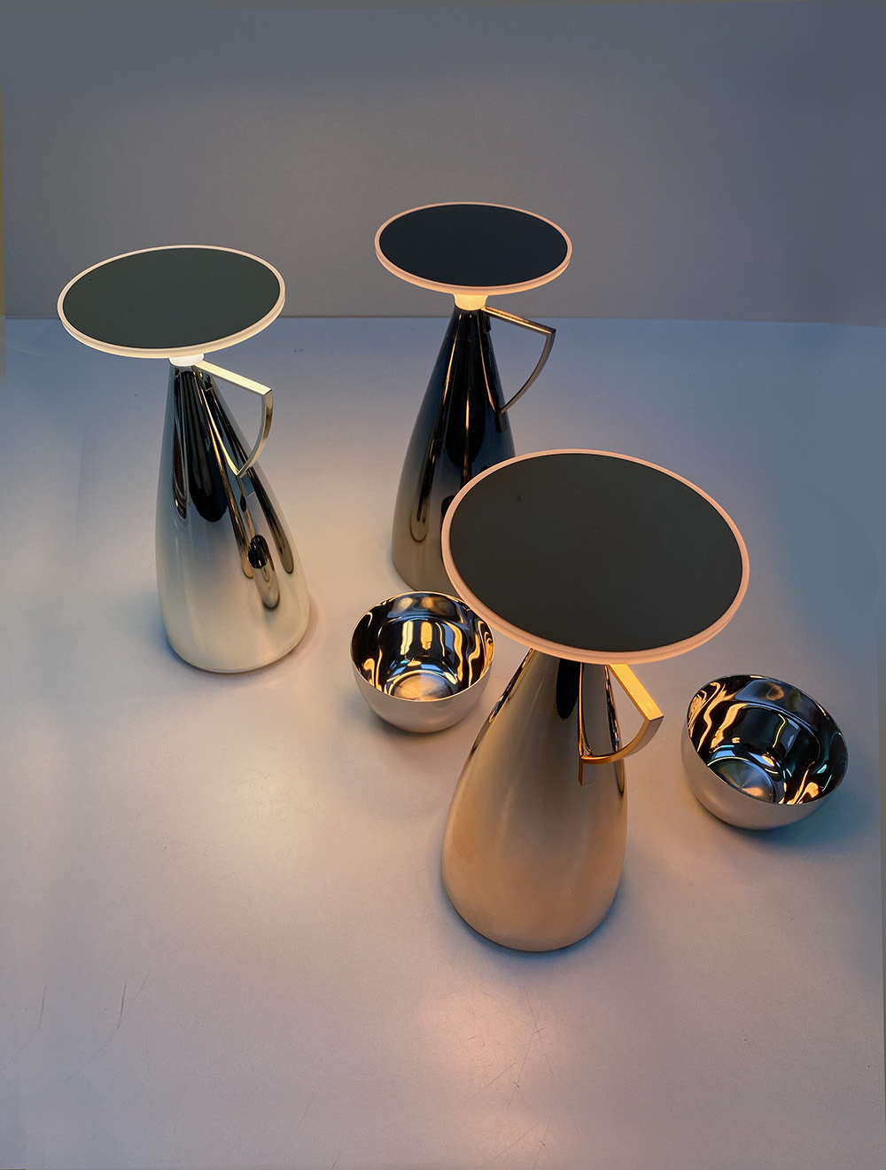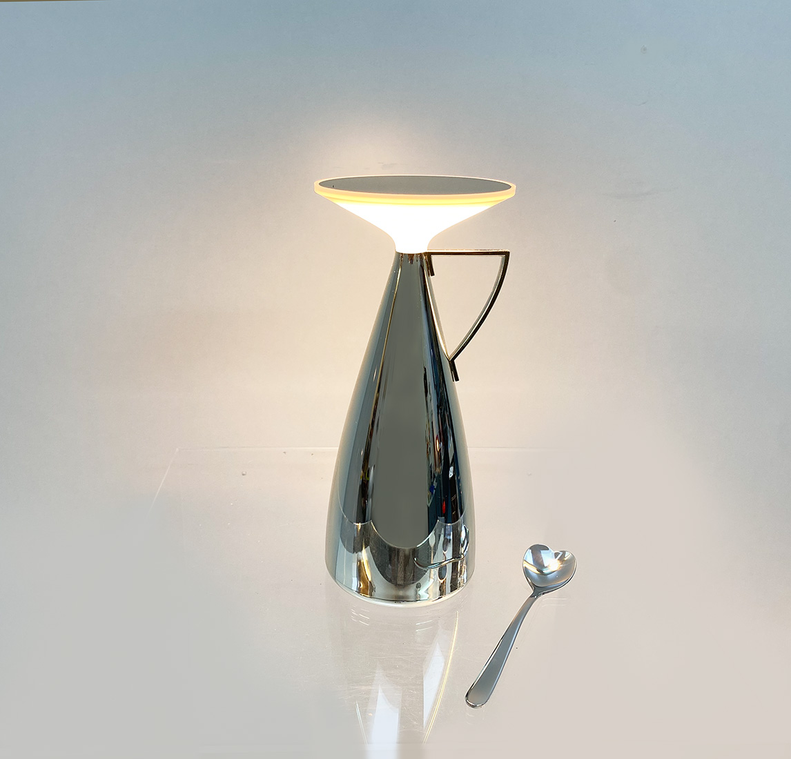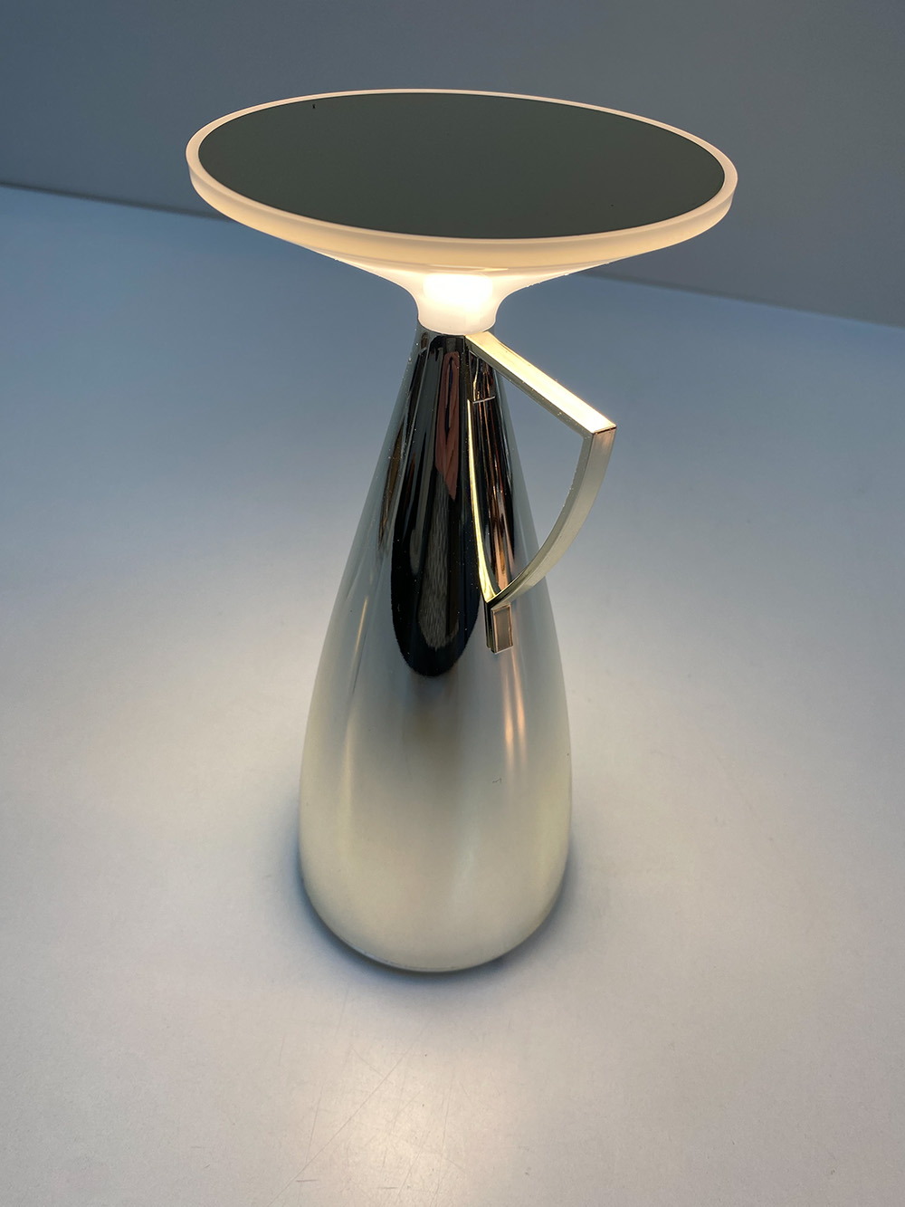 De Metallic CAMOMILLE-lamp van Philippe Starck is geïnspireerd op de vorm van een theepot die klaar staat om een dosis licht te ‘schenken’ en een warme, intieme sfeer te creëren. Deze oplaadbare lamp is gemakkelijk te verplaatsen en heeft een batterijduur van 50 tot 200 uur, waardoor zij geschikt is voor allerlei toepassingen. Zeer comfortabel. Door te klikken op de top stel je een van de drie kleurtemperaturen in. Daarna dim je door vast te houden. Een korte aanraking zet haar weer uit. Door haar veelzijdigheid is zij ideaal voor bedrijven en openbare ruimtes, waar zij bijdraagt aan het creëren van een charmante sfeer.