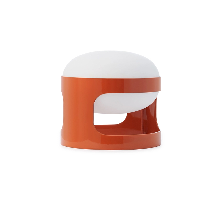 Heruitgave van de KD28-lamp van Joe Colombo uit 1967, opnieuw uitgewerkt met gerecyclede materialen en moderne lichttechniek.