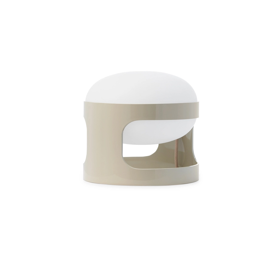 Heruitgave van de KD28-lamp van Joe Colombo uit 1967, opnieuw uitgewerkt met gerecyclede materialen en moderne lichttechniek.